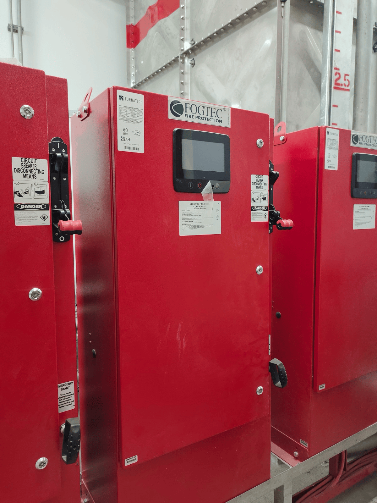 FOGTEC firefighting systems use finely atomized water to fight fires quickly and efficiently. The small water droplets cool the fire and surrounding area very effectively, allowing fires to be extinguished faster while using much less water. This reduces heat and water damage and helps protect valuable equipment and assets, especially in sensitive areas like data centers and industrial facilities.